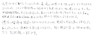 施術を行う度によく動くようになり、痛みもなくなってきました。